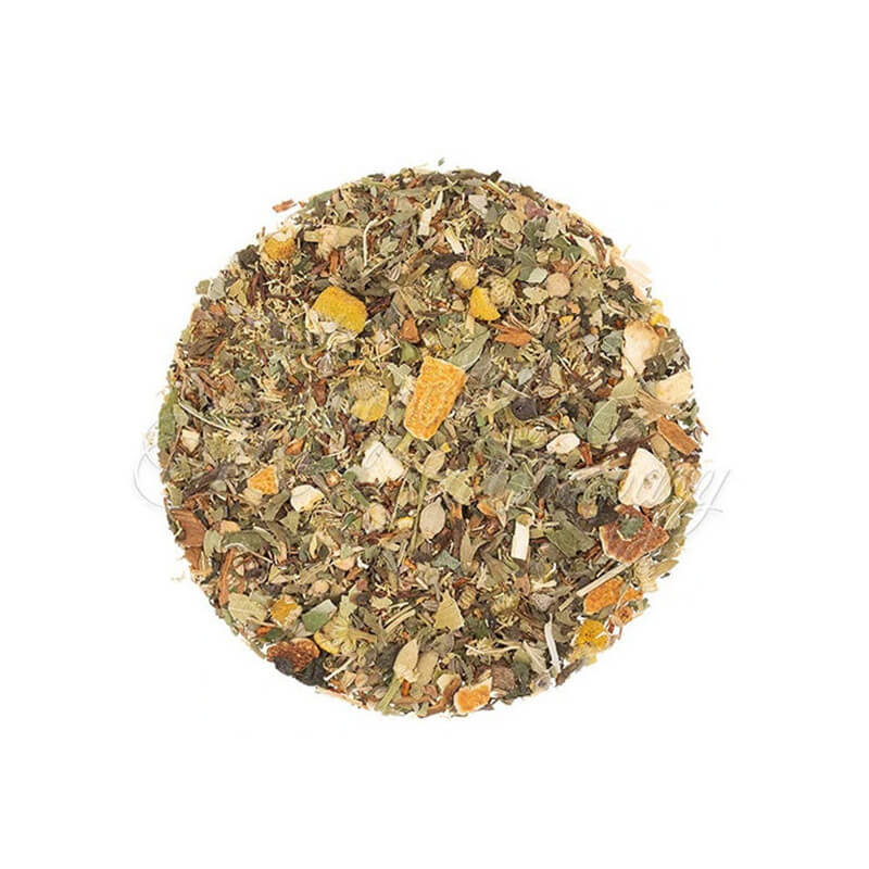 Camomille, rooibos, anis, pétales de tilleul, mélisse, morceaux d’orange, cannelle, feuilles de verveine citronnée, fleur de passiflore.
